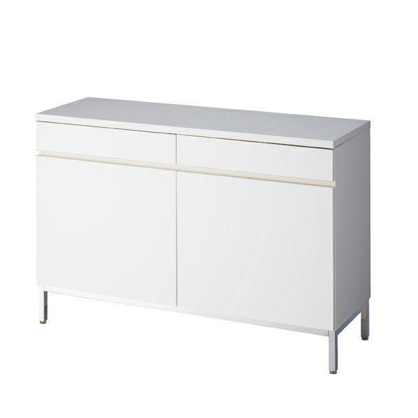 【まとめ買い10個セット品】 木製収納ボックス ハイタイプ 引き出し&扉 スチール脚タイプ W120cm用 エクリュ【店舗什器 パネル ディスプレー 棚 店舗備品】