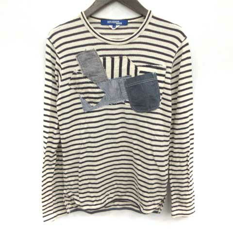 【中古】COMME des GARCONS HOMME◆HI-T021/AD2011/パッチワーク/長袖Tシャツ/S/コットン/NVY【メンズウェア】